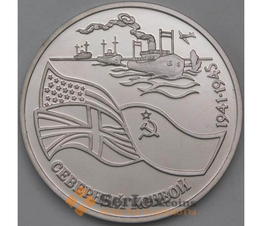 Монета России номиналом 3 рубля 1992 Северный конвой Proof