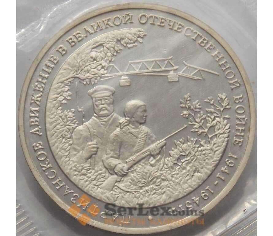 Монета Россия 3 рубля 1994 Партизаны Proof запайка арт. 15364