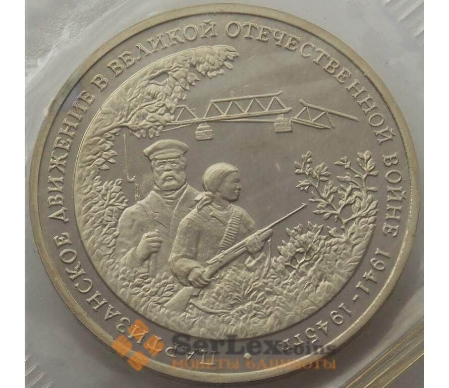 Монета Россия 3 рубля 1994 Партизаны Proof запайка арт. 15381