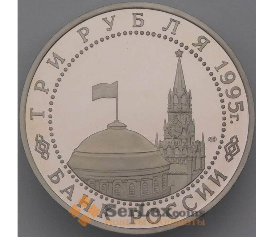 монета России номиналом 3 рубля 1995 Варшава Proof холдер