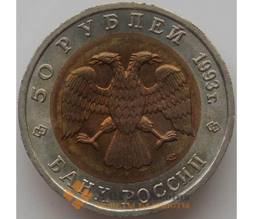 Монета Россия 50 рублей 1993 Y332 Красная книга Тетерев aUNC арт. 12028