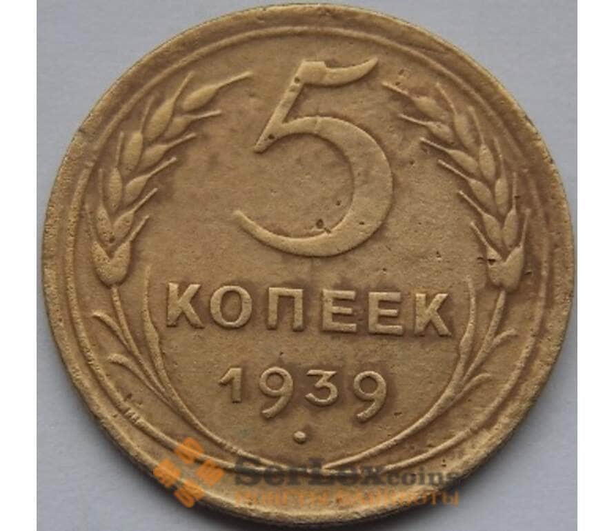 Монета СССР 5 копеек 1939 Y108 VF арт. С03513