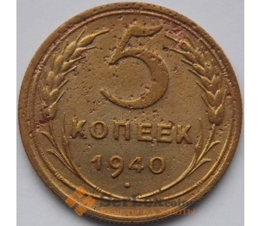 Монета СССР 5 копеек 1940 Y108 F арт. C04019