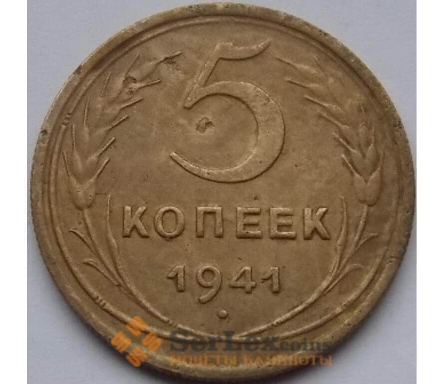 Монета СССР 5 копеек 1941 Y108 VF арт. C03512