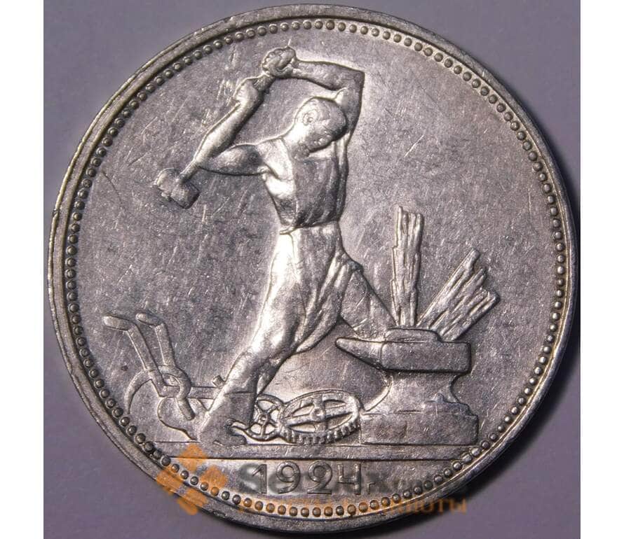 монета СССР номиналом 50 копеек 1924 ПЛ Y89 AU блеск