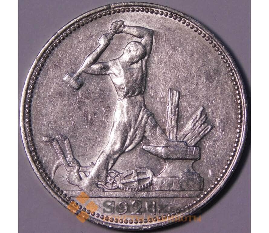 монета СССР номиналом 50 копеек 1924 ПЛ Y89 AU блеск