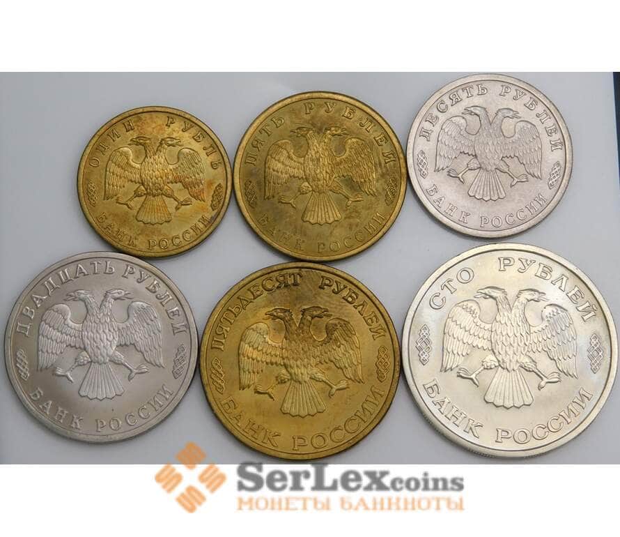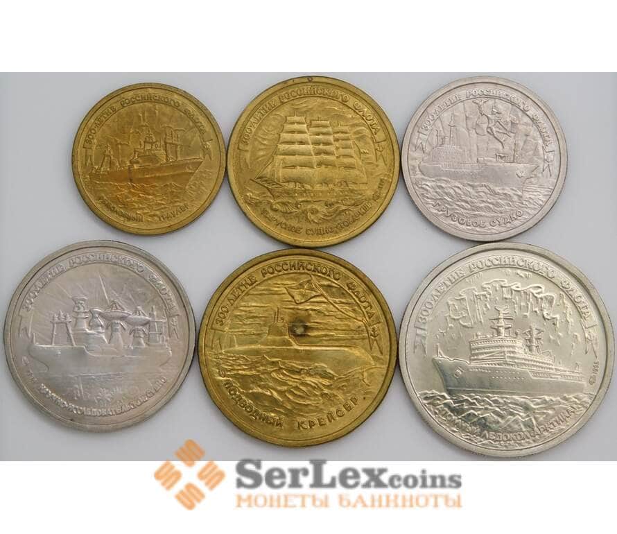 Россия набор монет 1 5 10 25 50 100 рублей 1996 года 300 лет Российскому флоту без буклета и без жетона