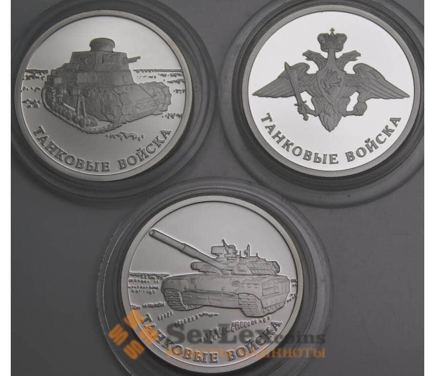 Россия 1 рубль 2010 Proof Танковые войска (3 шт.) капсулы не родне арт. 47980