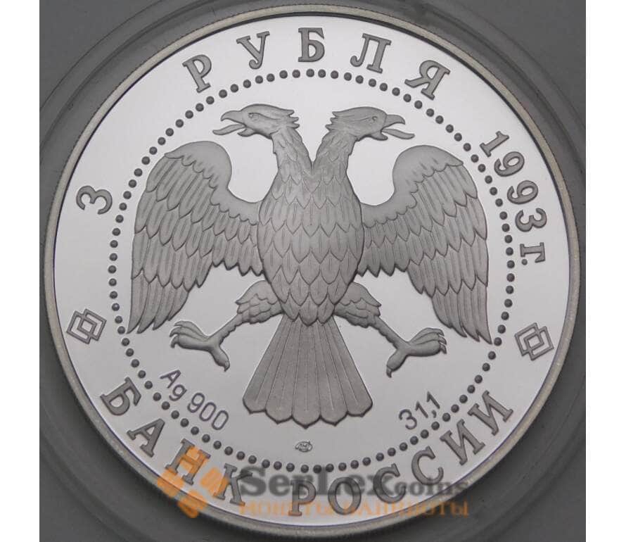 Монета Россия 3 рубля 1993 Proof Карта плавания. Кругосветное путешествие арт. 29977
