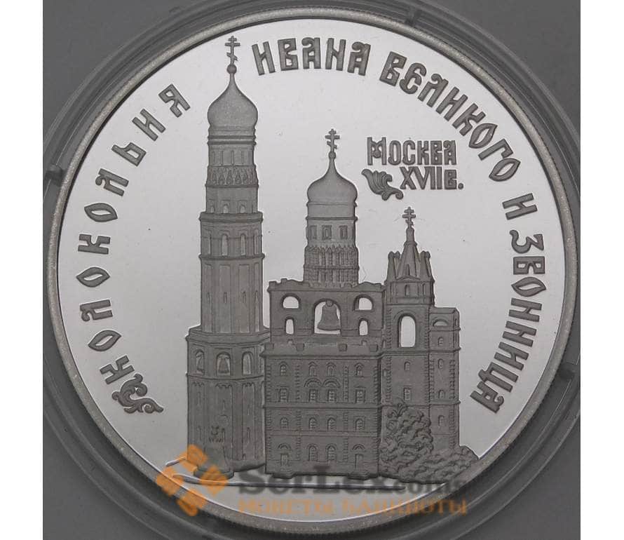 Монета Россия 3 рубля 1993 Proof Колокольня Ивана Великого и Звонница арт. 29946