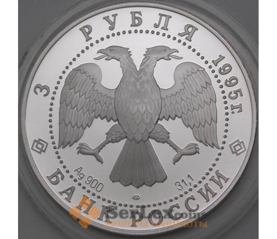 Россия 3 рубля 1995 Proof Российская Национальная Библиотека