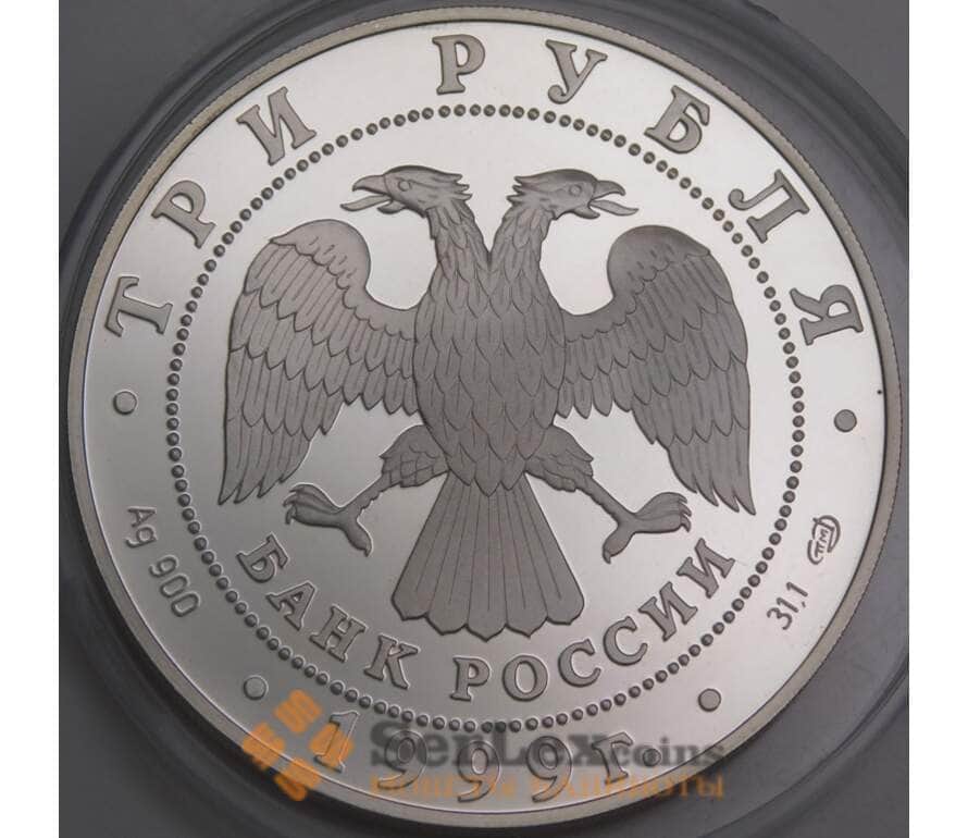 Россия 3 рубля 1999 Proof 1-я Тибетская экспедиция микроцарапины арт. 47971