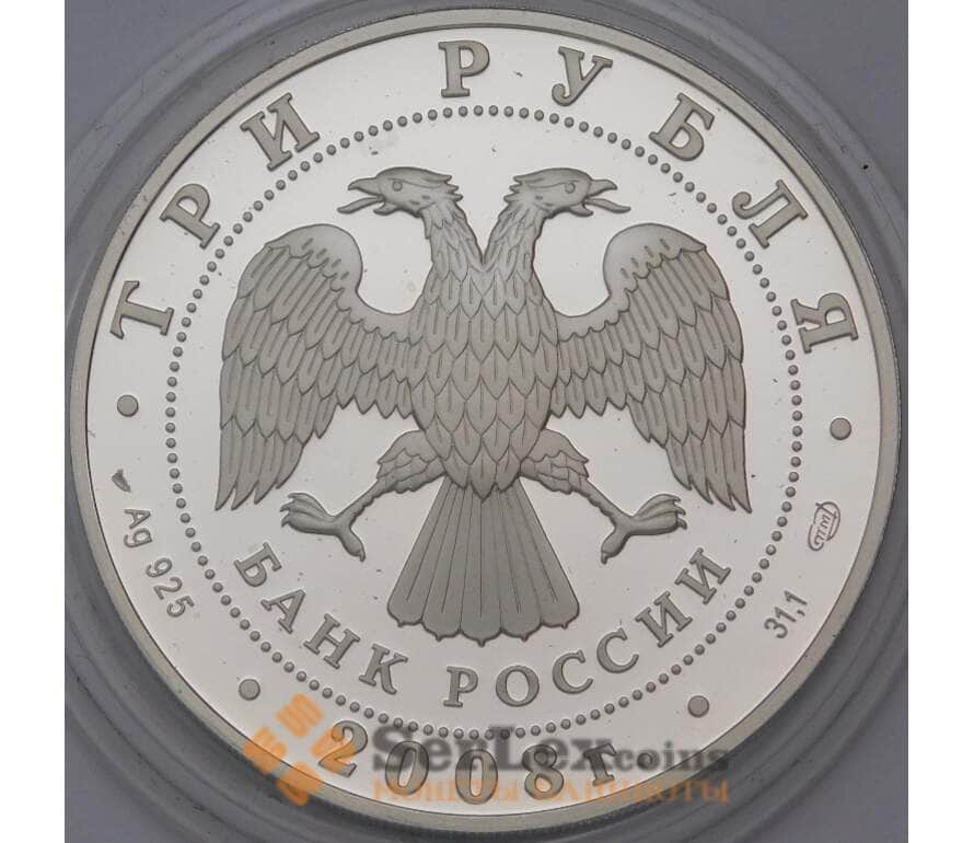 Монета Россия 3 рубля 2008 Proof Сохраним Наш мир - Речной Бобр Бобер (ОЮ) арт. 31157