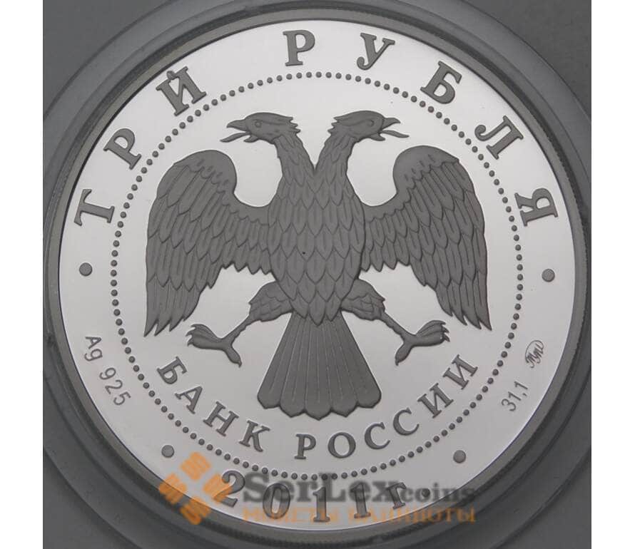 Монета Россия 3 рубля 2011 Proof Сохраним наш Мир - Леопард Переднеазиатский арт. 29935