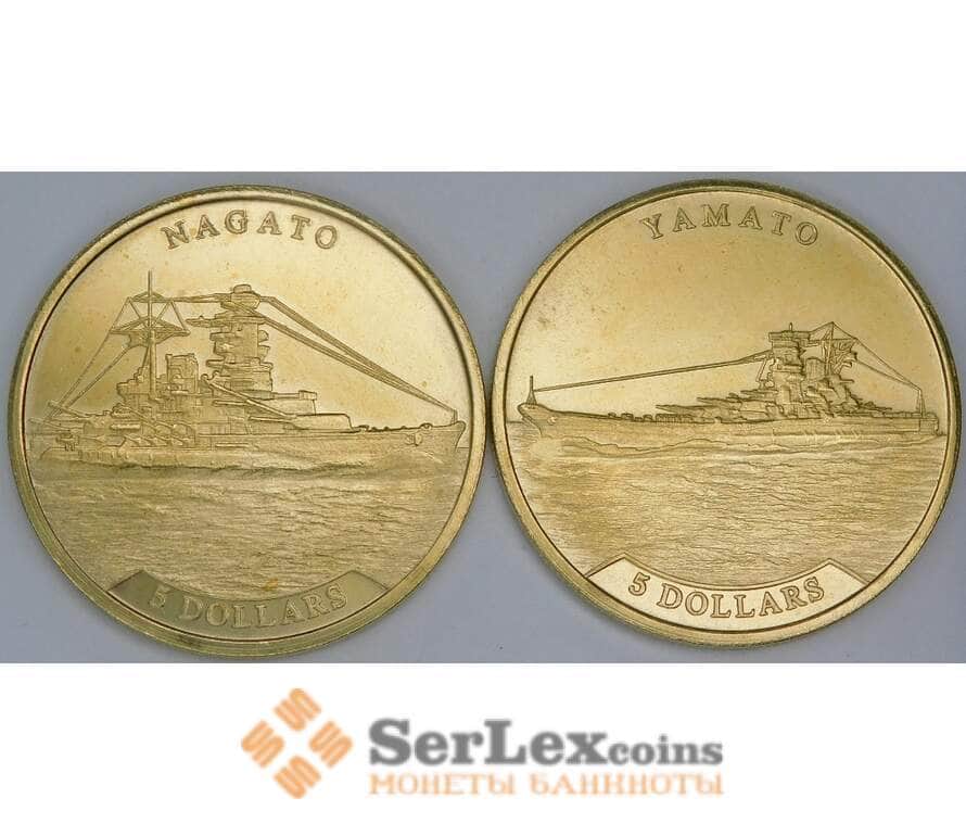 Науру 5 долларов *2 шт 2020 UNUSUAL Корабли Крейсер Ямато и Нагато UNC арт. 55328